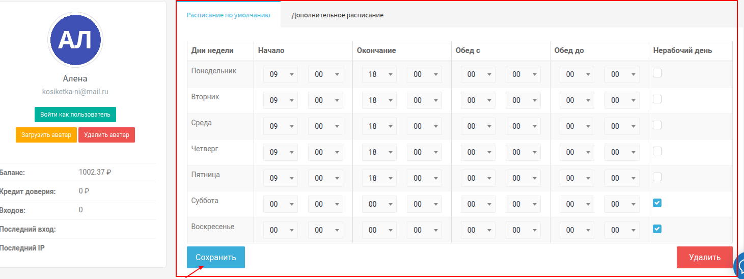 Заполняем расписание и нажимаем кнопку "Сохранить" внизу страницы.